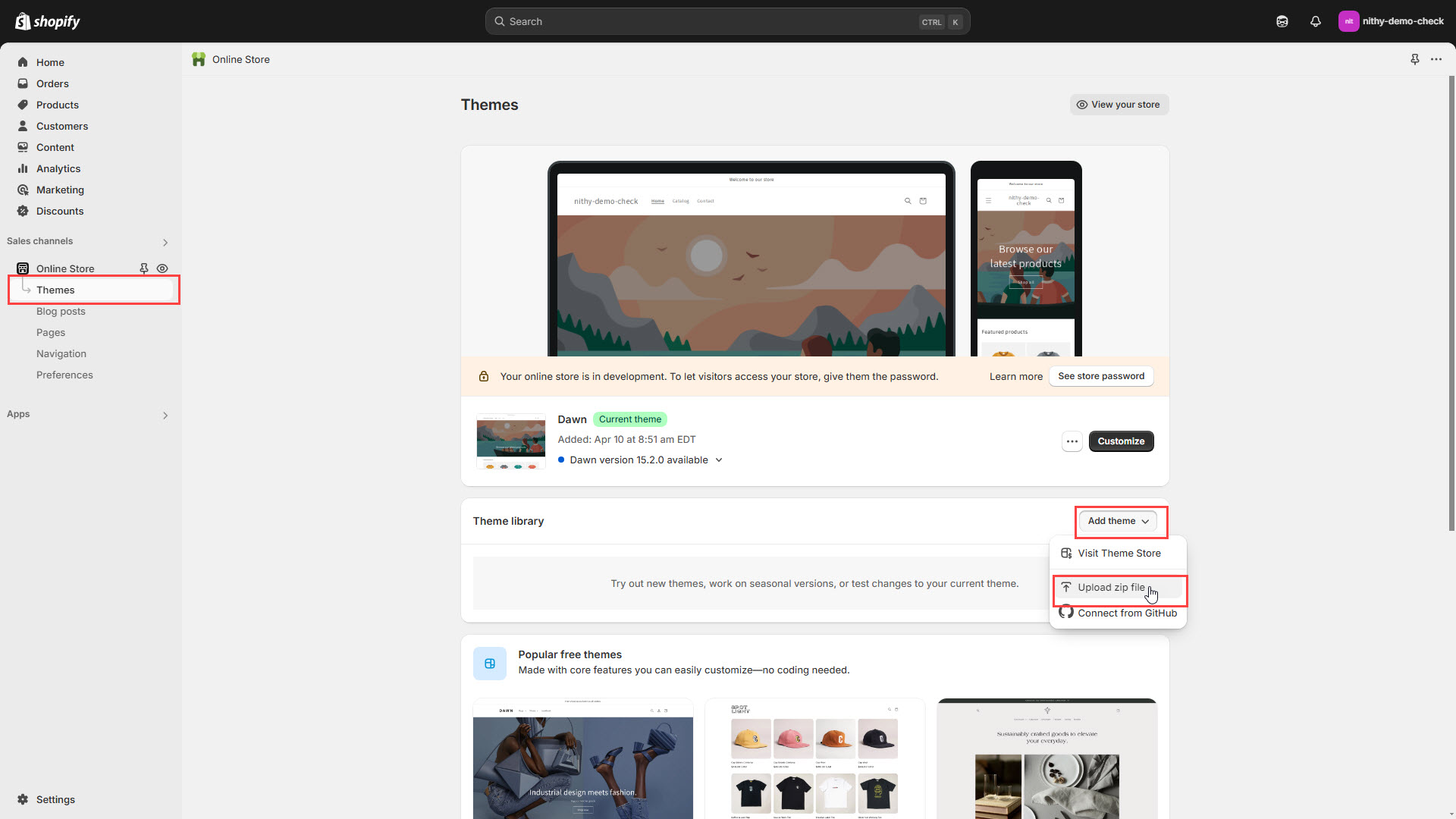 Select and upload the edukit.zip file. The theme will then be uploaded to your store.