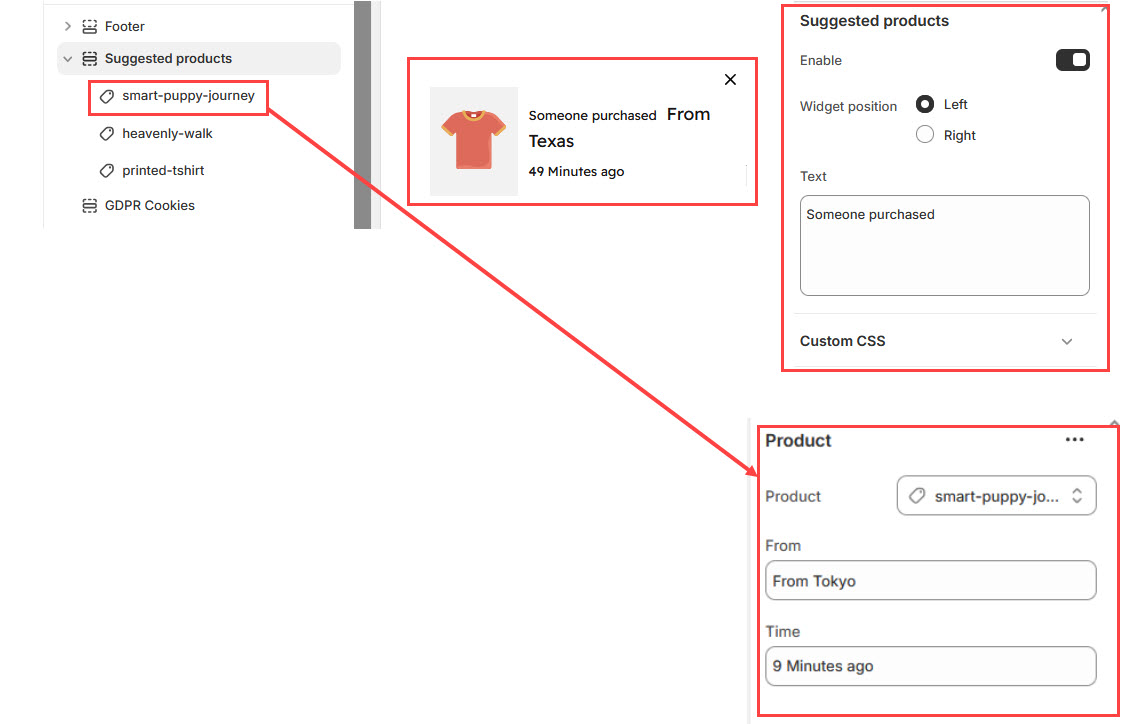 • Text : Modify the default text (e.g., "Someone purchased") to create urgency and engagement.