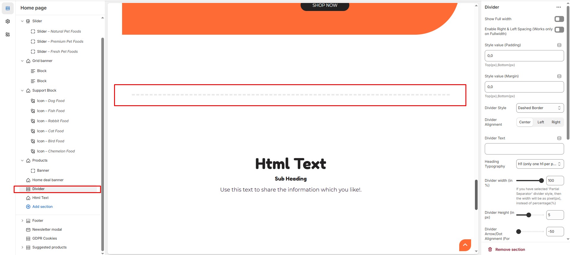 • Divider Alignment : Choose the divider alignment (Left, Center, Right).