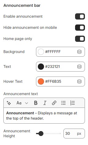 Enable Announcement Bar: Displays an announcement bar at the top.