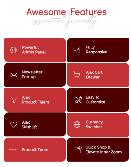 • Great for SEO: Uses the latest Shopify SEO features and product data is formatted for Google rich snippets, so that product listings are optimized for search engines.