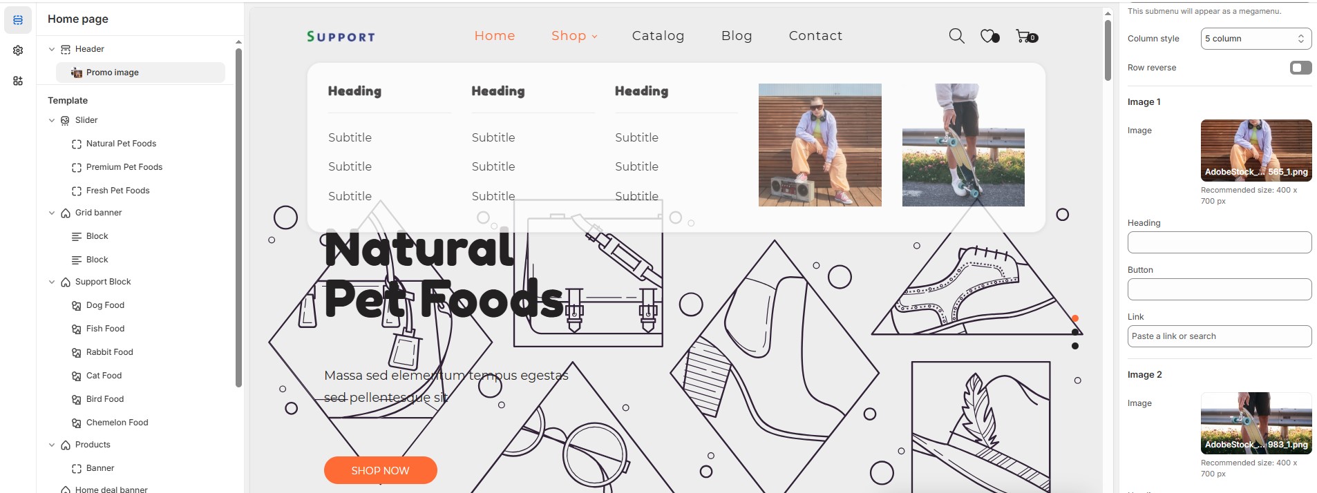 The Promo Image feature allows you to display promotional images within a megamenu, enhancing navigation with visual content such as offers, banners, or featured products.