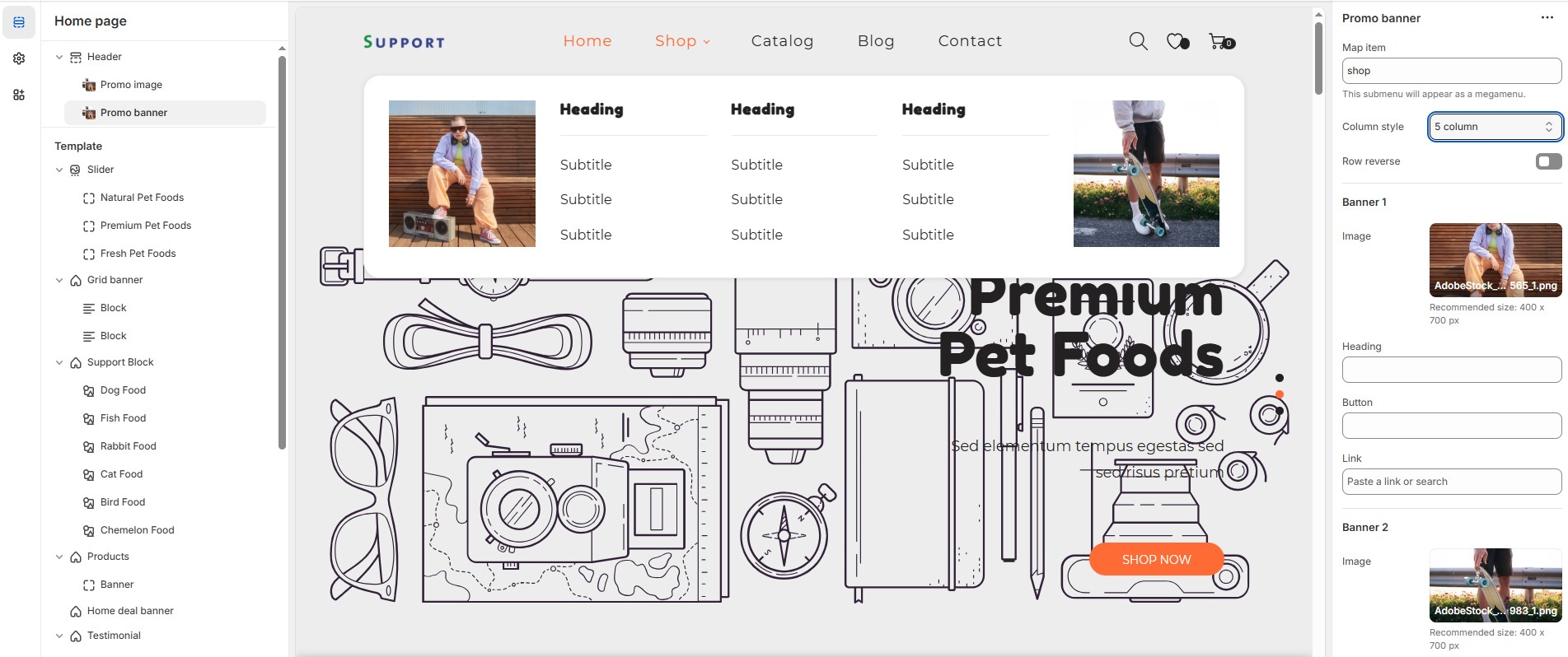 The Promo Banner feature allows you to display promotional banners within a megamenu, enhancing navigation with visual content such as special offers, featured products, or announcements.
